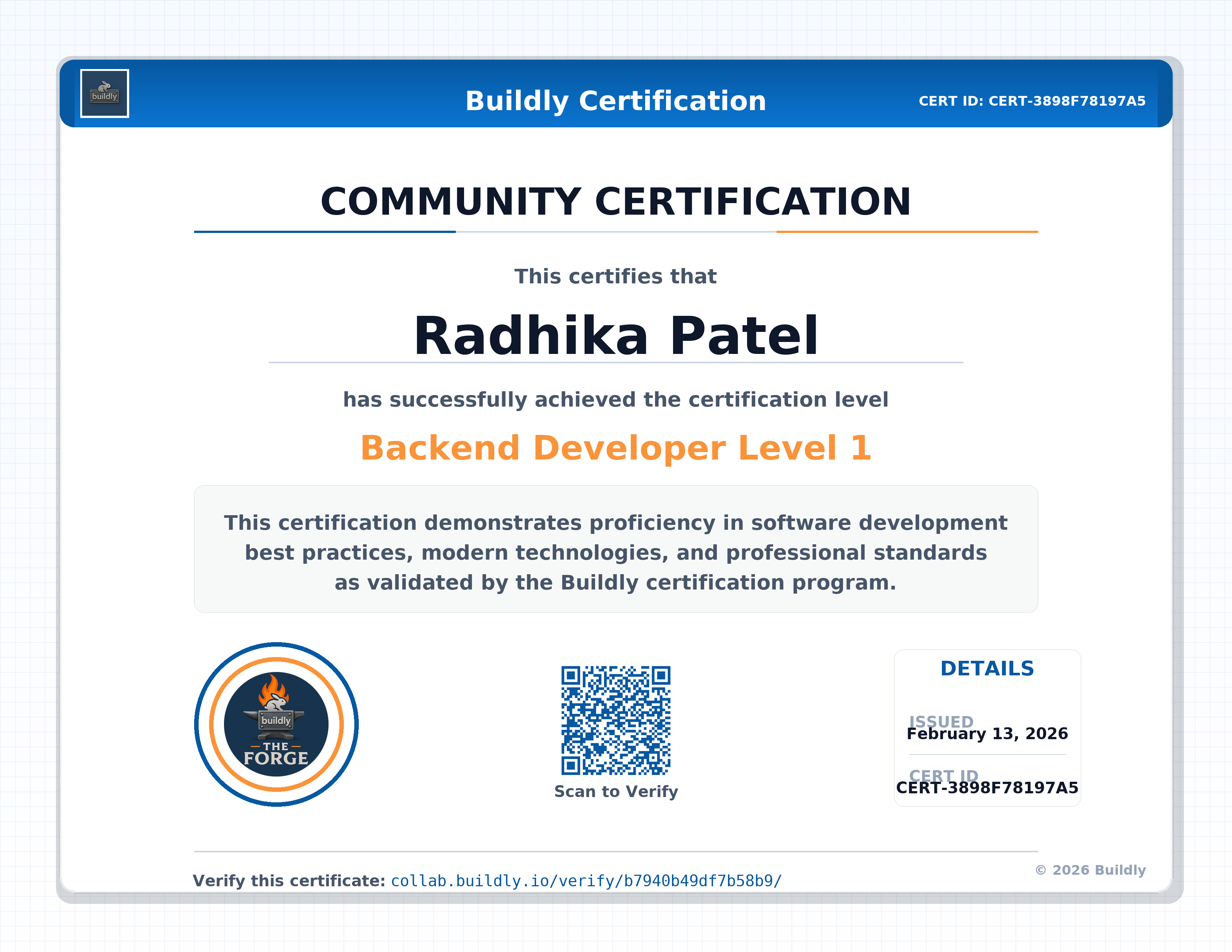 6 certificationsBackend Developer Level 3 (Senior)